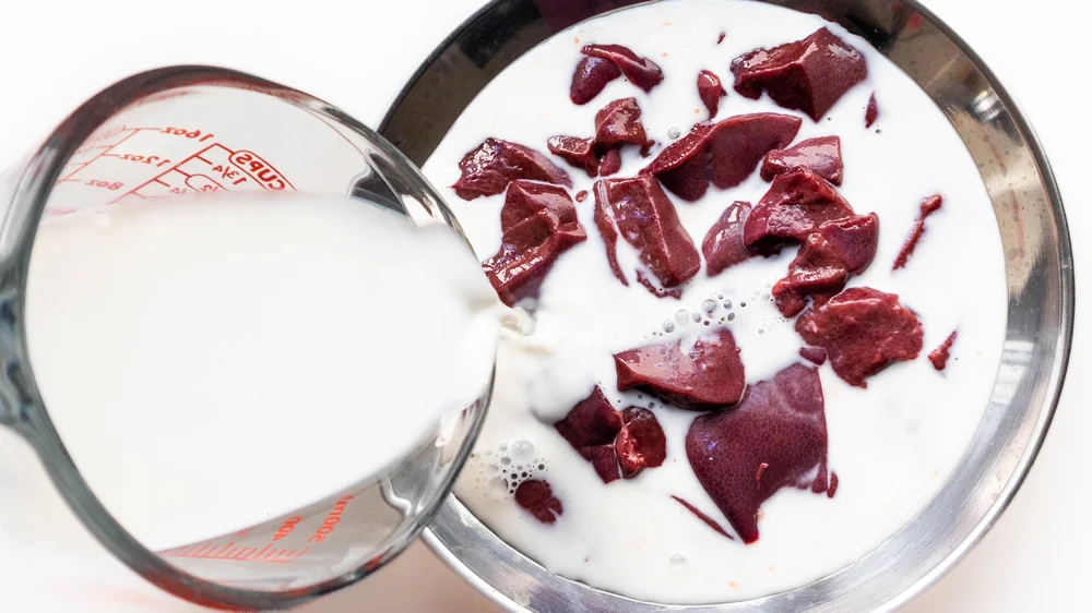 Soak liver in milk to help clean and subdue the strong smell.